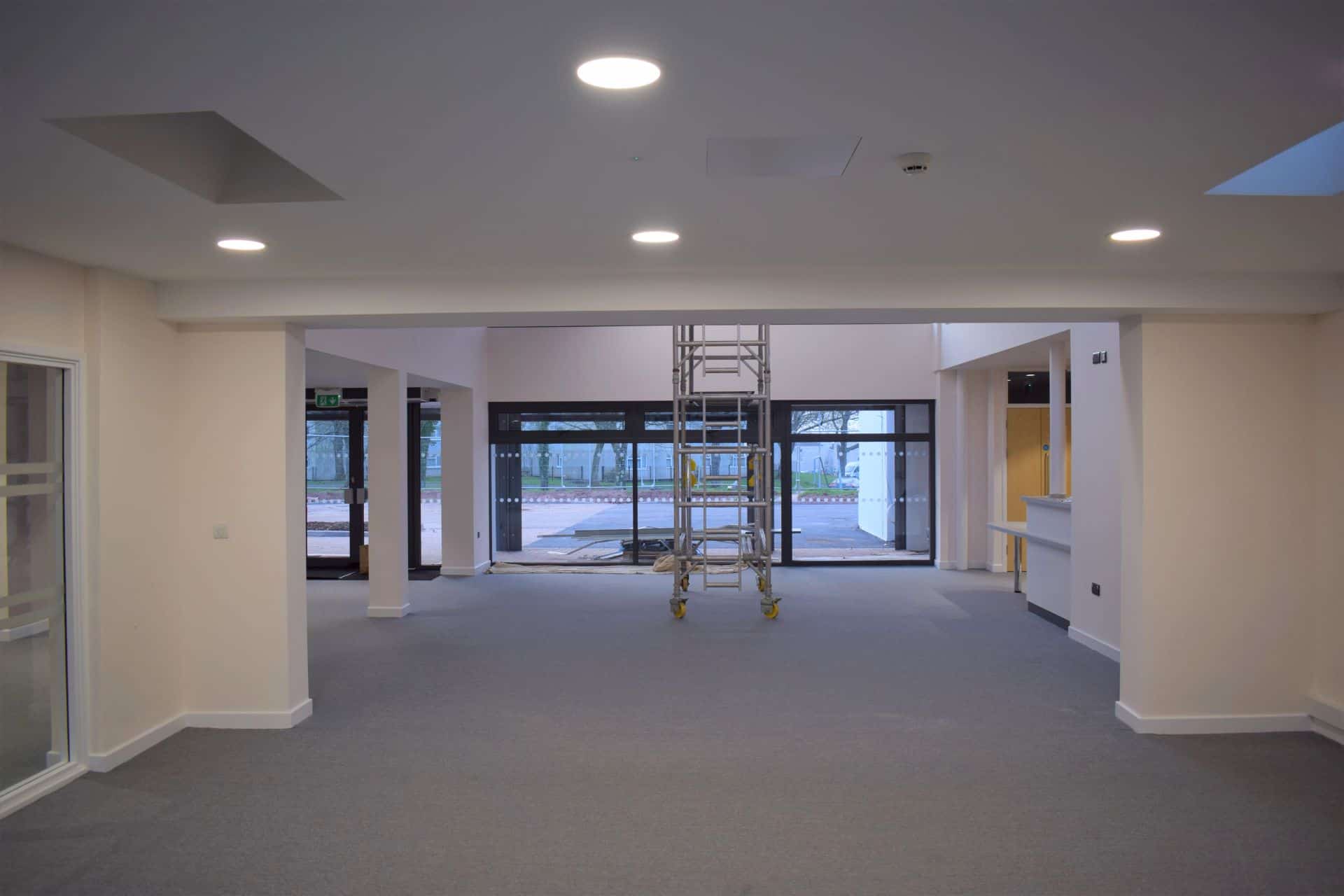 The scheme comprises of the refurbishment and extension of the new community wellbeing space in an annexe building to the front of the existing Glenwood Church Centre. This has occurred in parallel with the re-ordering & refurbishment of the existing Church centre. Installation of a new training areas and fully fitted out kitchen. With adjustable kitchen units for full inclusivity and the provision of therapy rooms, Children’s crèche, lift and meeting areas the new building will be fully inclusive for the whole community.
