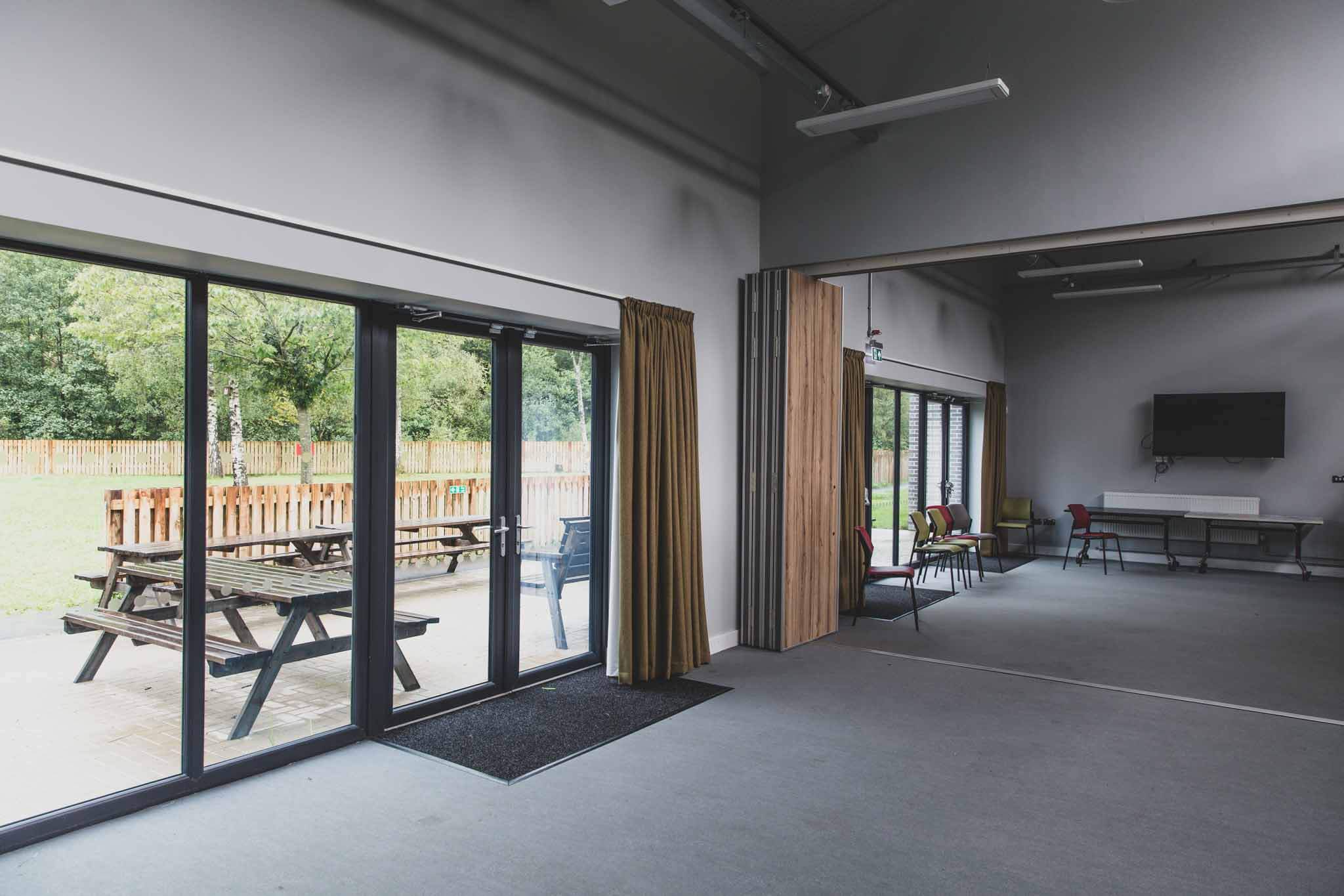 To provide for future flexibility, 3 number acoustic folding partitions were installed during the contract to the meeting rooms and conference facilities within the single storey extension to the west. These were tested by our Acoustic Consultant alongside the accommodation areas at the end of the contract to ensure compliance. Drying rooms, showers, toilet blocks and changing areas were fitted out, including wash down zones both internally and externally due to the caving and Watersports activities undertaken locally by the children requiring this.